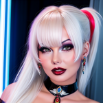 To generate a picture, you need to use prompts, for example: realistic,(lips closed)1girl, eyewear on head, solo, breasts, looking at viewer, sunglasses, jewelry, earrings, white hair, lips, upper body, hair ornament , hair between eyes, bare shoulders, red lips, large breasts, ponytail, neon lights, closed mouth, bangs.